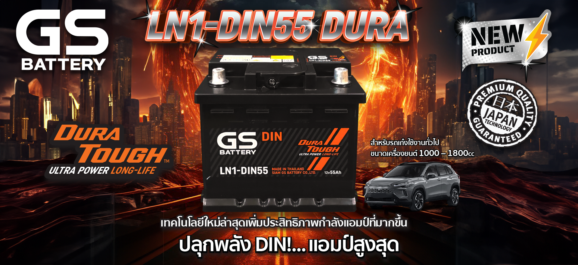 ปลุกพลัง DIN! เพิ่มพลังแอมป์สูงสุดในรุ่น ที่สุดของแบตเตอรี่พลังอึดขั้วจม สเปคตรงรุ่น ไม่ต้องดัดแปลง จาก DURA TOUGH รุ่น LN1-DIN55 DURA : 55 แอมป์ “เพิ่มประสิทธิภาพพลังแอมป์ที่มากขึ้น&rdqu...